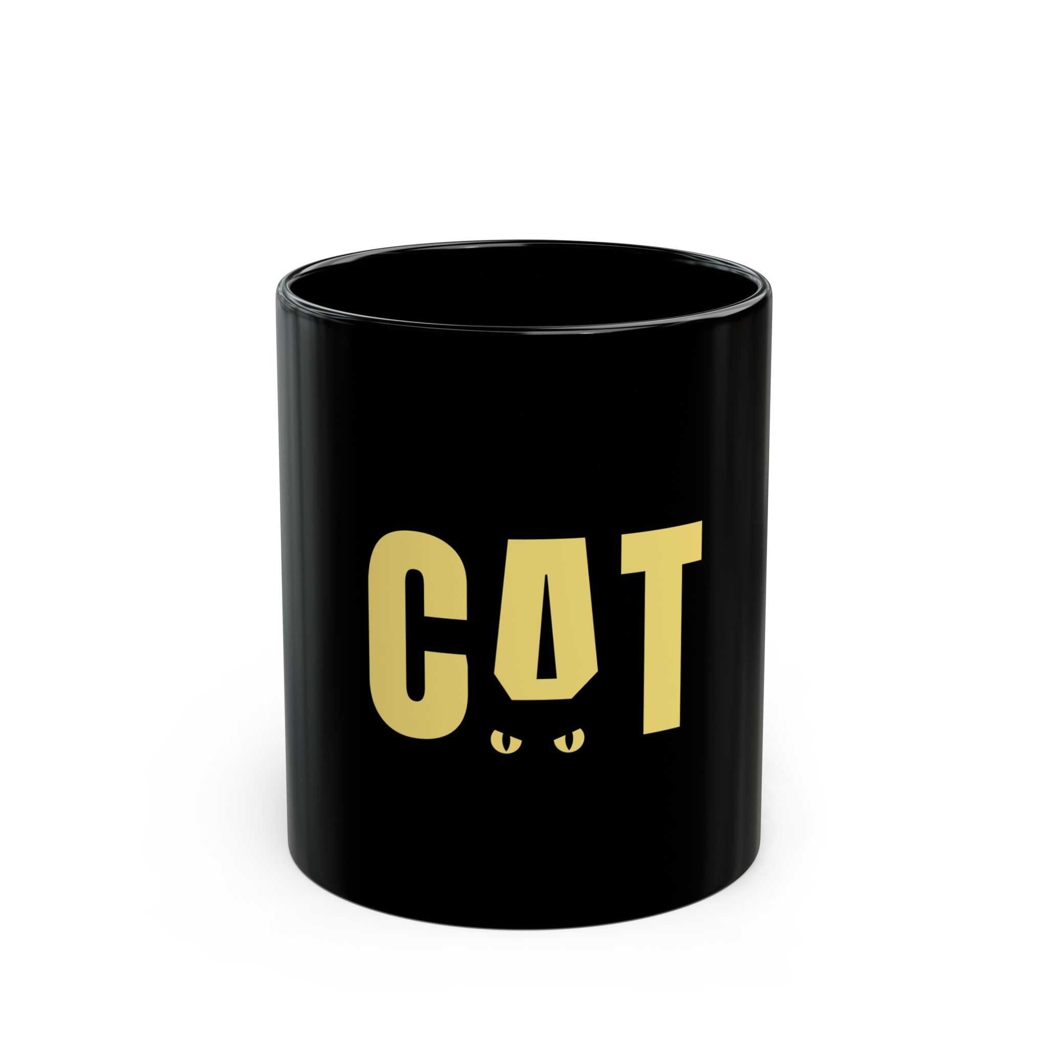 Black Cat Eyes Mug — Minimalist Yellow CAT Design (11oz & 15oz)
