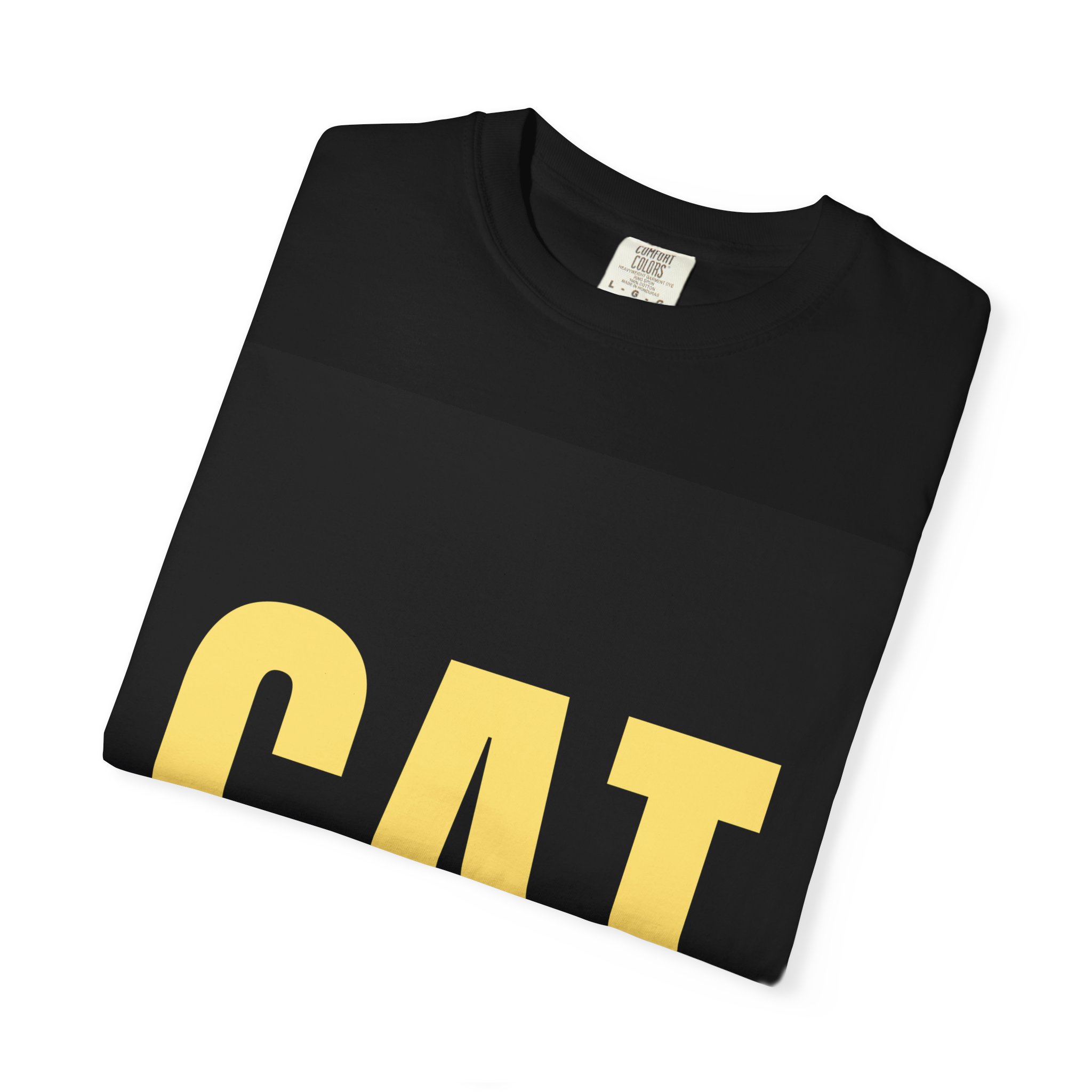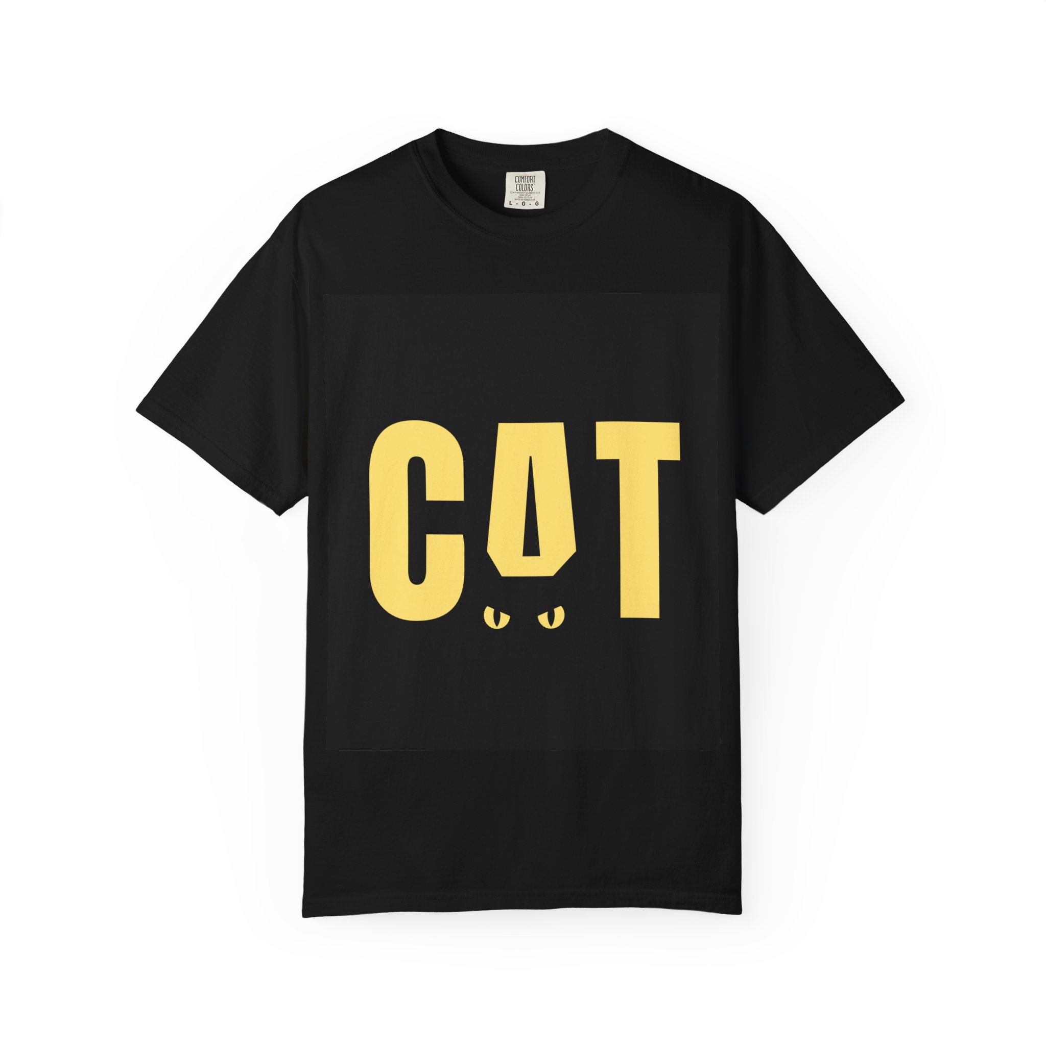 Cat Graphic T-Shirt — Yellow CAT Lettering with Hidden Eyes