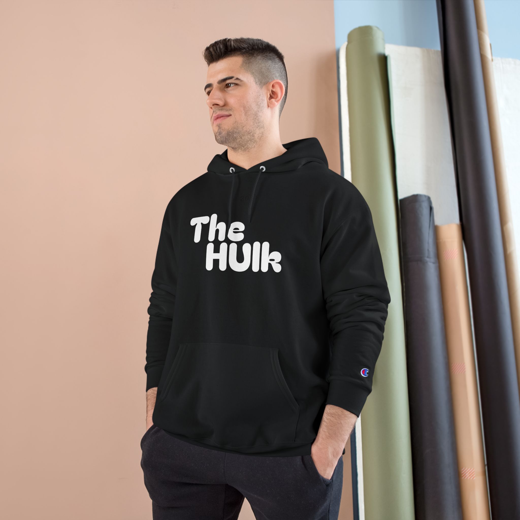 This heavyweight Champion hoodie carries a raw, charged energy — a storm bottled in cotton and polyester. The deep black backdrop makes the vivid, snarling green face on the back pop with electric intensity, like a sudden roar in a quiet room. Pull it on when you want to feel untamed confidence: the roomy kangaroo pocket holds your hands or headphones, the adjustable hood tucks in against wind, and the relaxed cut layers easily over tees. Small details — the woven drawcords, ribbed cuffs and hem, and the Champion “C” on the sleeve — keep it familiar and durable, while recycled fibers nod to thoughtful choices. Wear it to late-night shows, comic meetups, or when you just need to turn up the volume on a regular day.