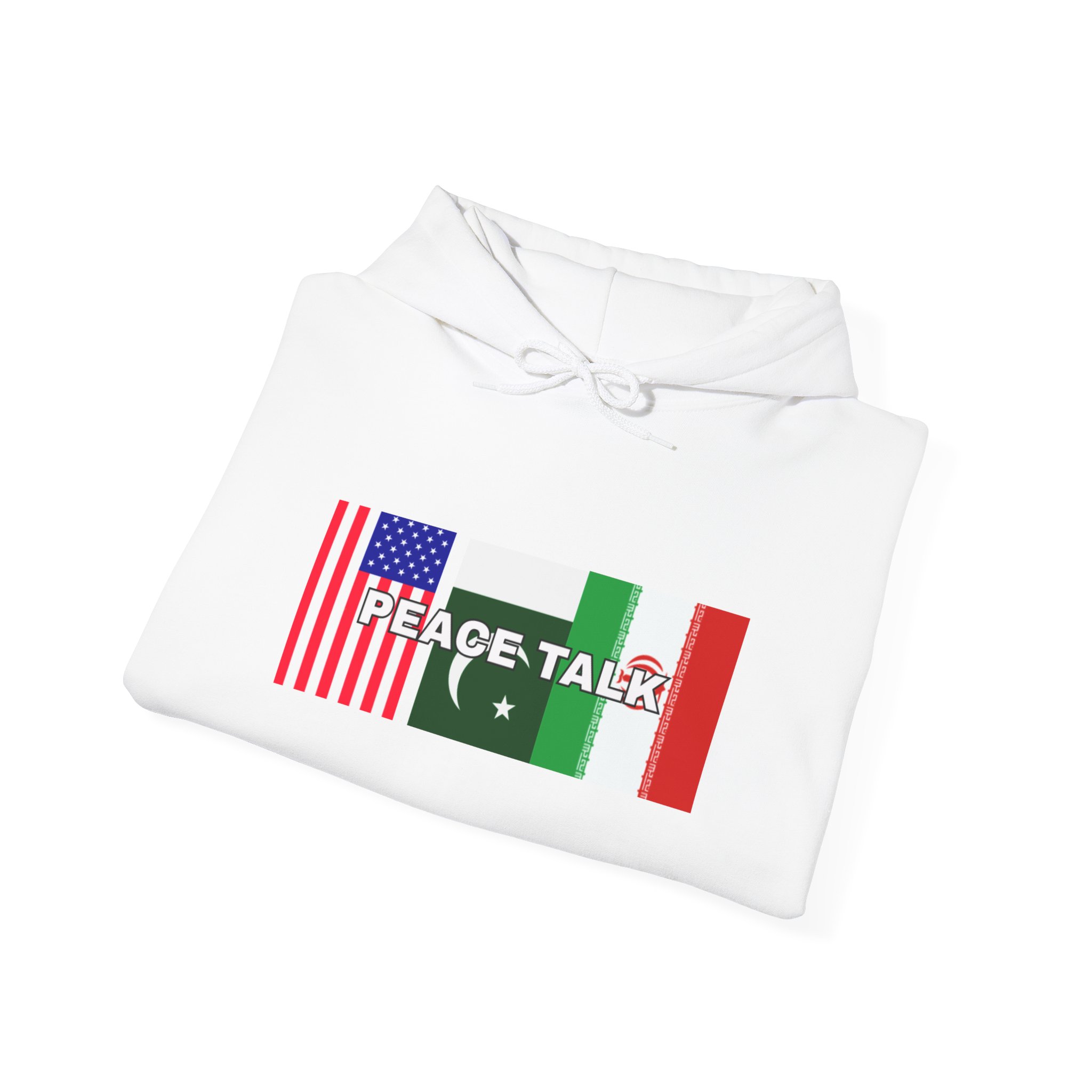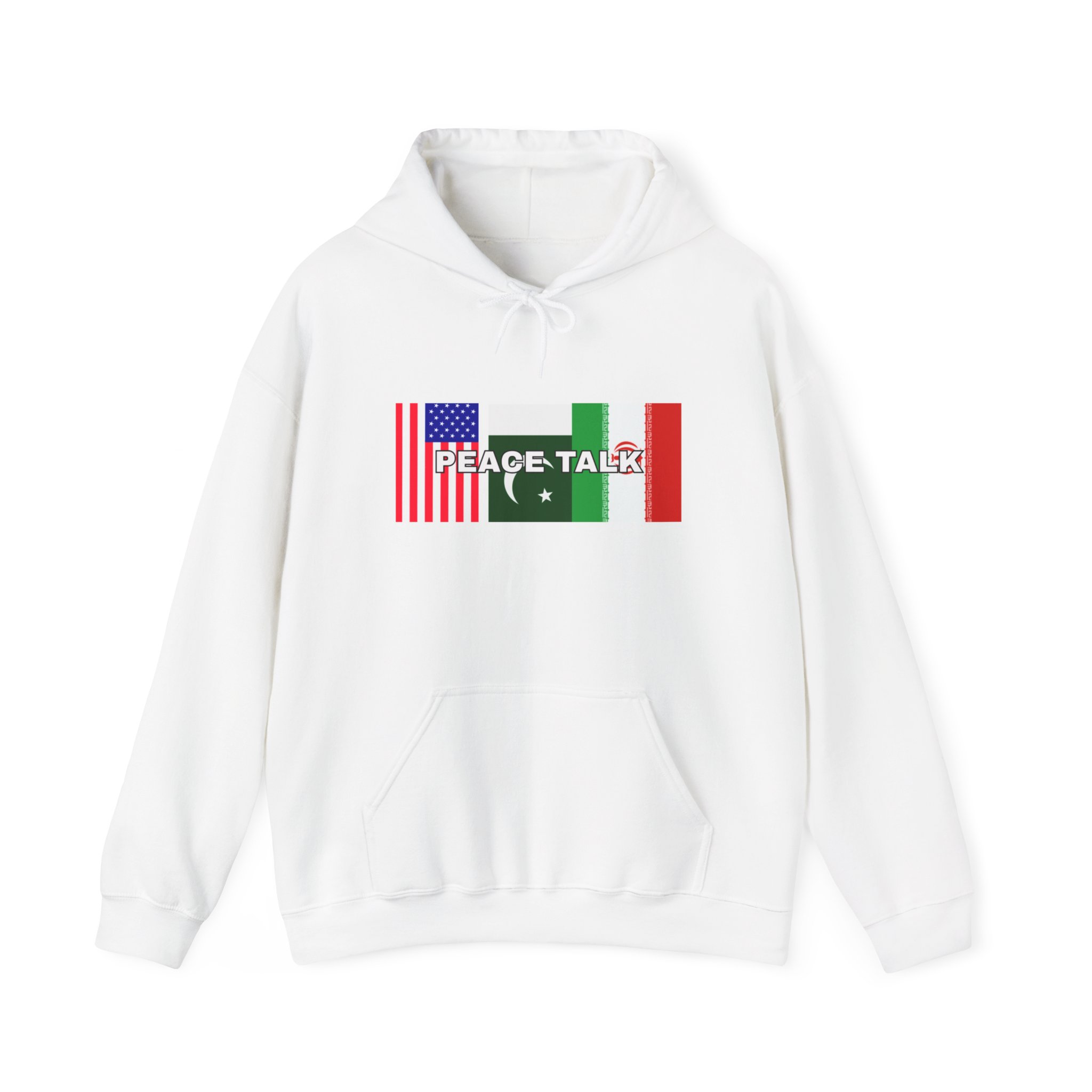 A soft, cozy hooded sweatshirt that wears like a warm conversation starter. Lightweight enough for city strolls, substantial enough for chilly mornings by the cafe. The front print blends flag-inspired graphics with the words “PEACE TALK,” giving the hoodie a hopeful, global feel without shouting — a quiet statement for those who carry unity in their pockets. The roomy kangaroo pouch and double-lined hood invite hands and thoughts to settle in. Wear it to low-key meetups, late-night study sessions, or long drives where playlists and good company do the talking.