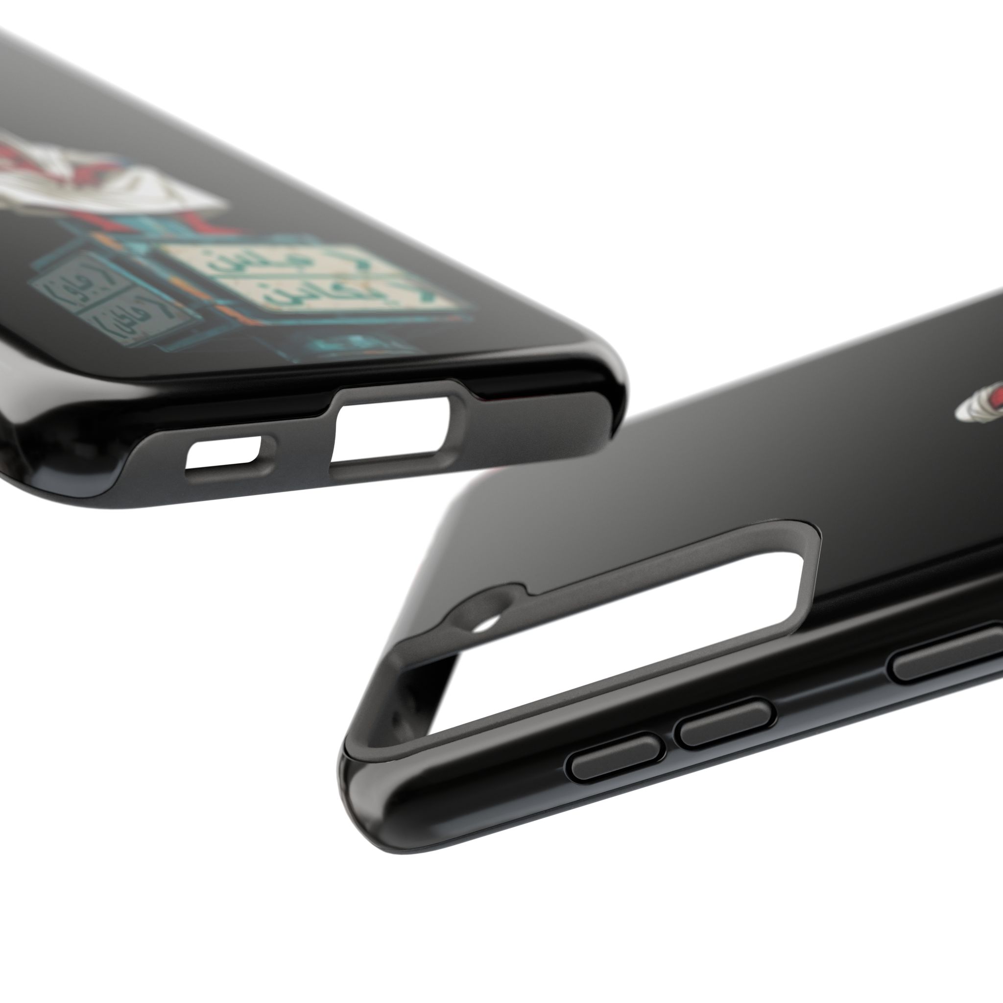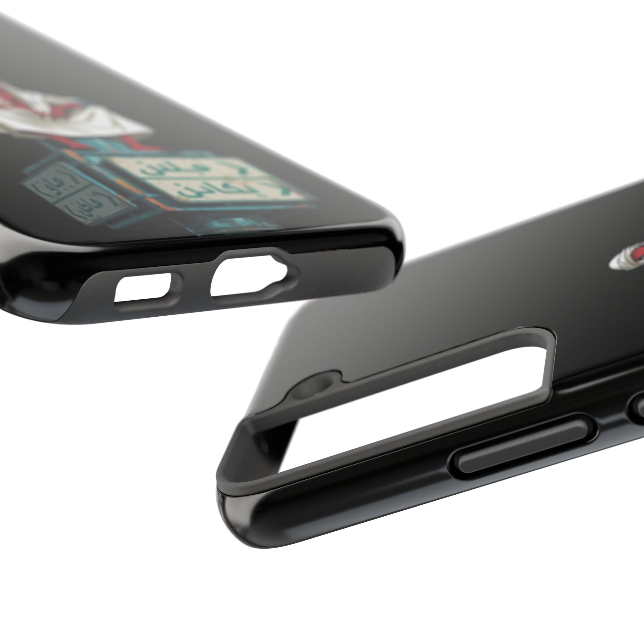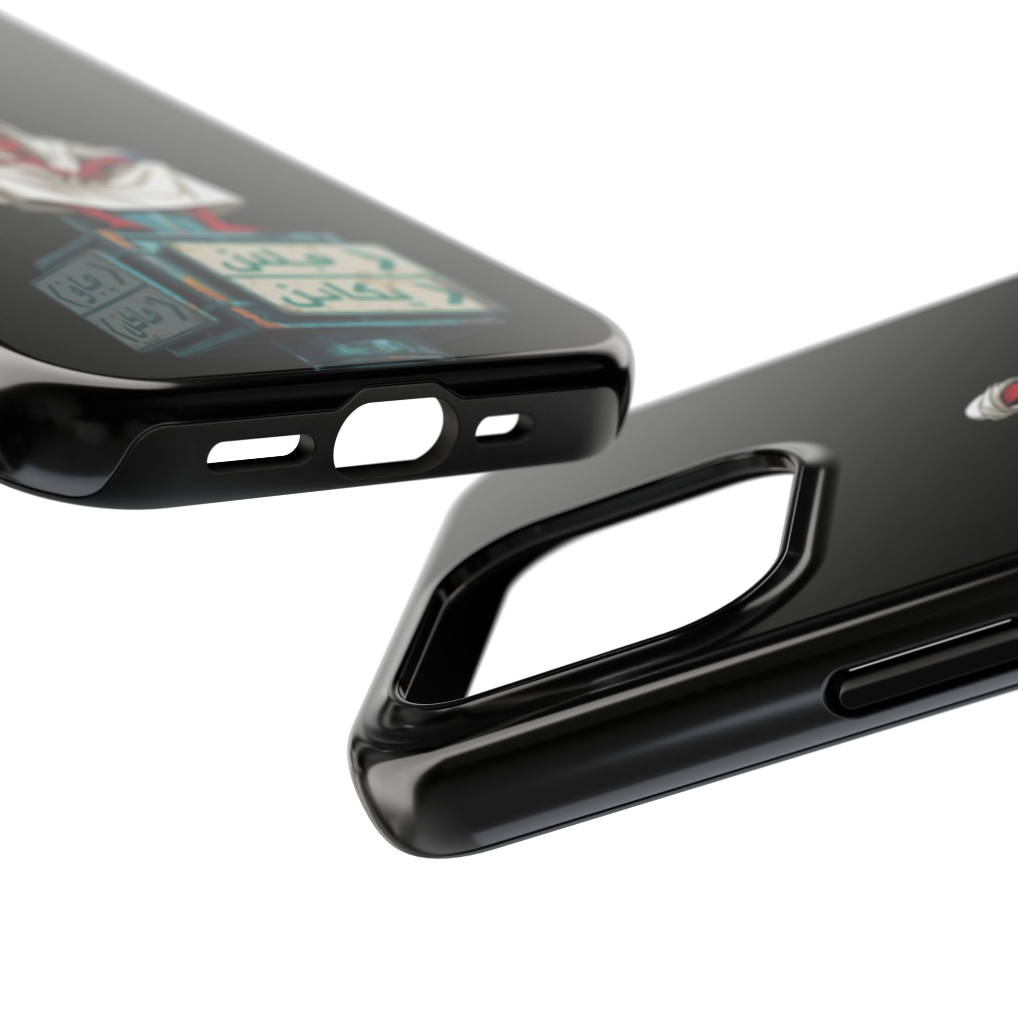 A rugged, glossy phone case that blends comic-book edge with desert street-smarts. The striking illustration of a cloaked, relaxed hero perched atop bilingual street signs gives this case an urban, cross-cultural vibe — equal parts playful and watchful. The high-gloss finish makes colors pop against the deep black background while the shock-absorbing inner liner and two-piece shell defend your phone from daily drops and knocks. Carry a little story in your pocket: a traveler’s calm, a city’s grit, and a protector’s stance — all in a slim, durable package that supports wireless charging and resists UV fading.