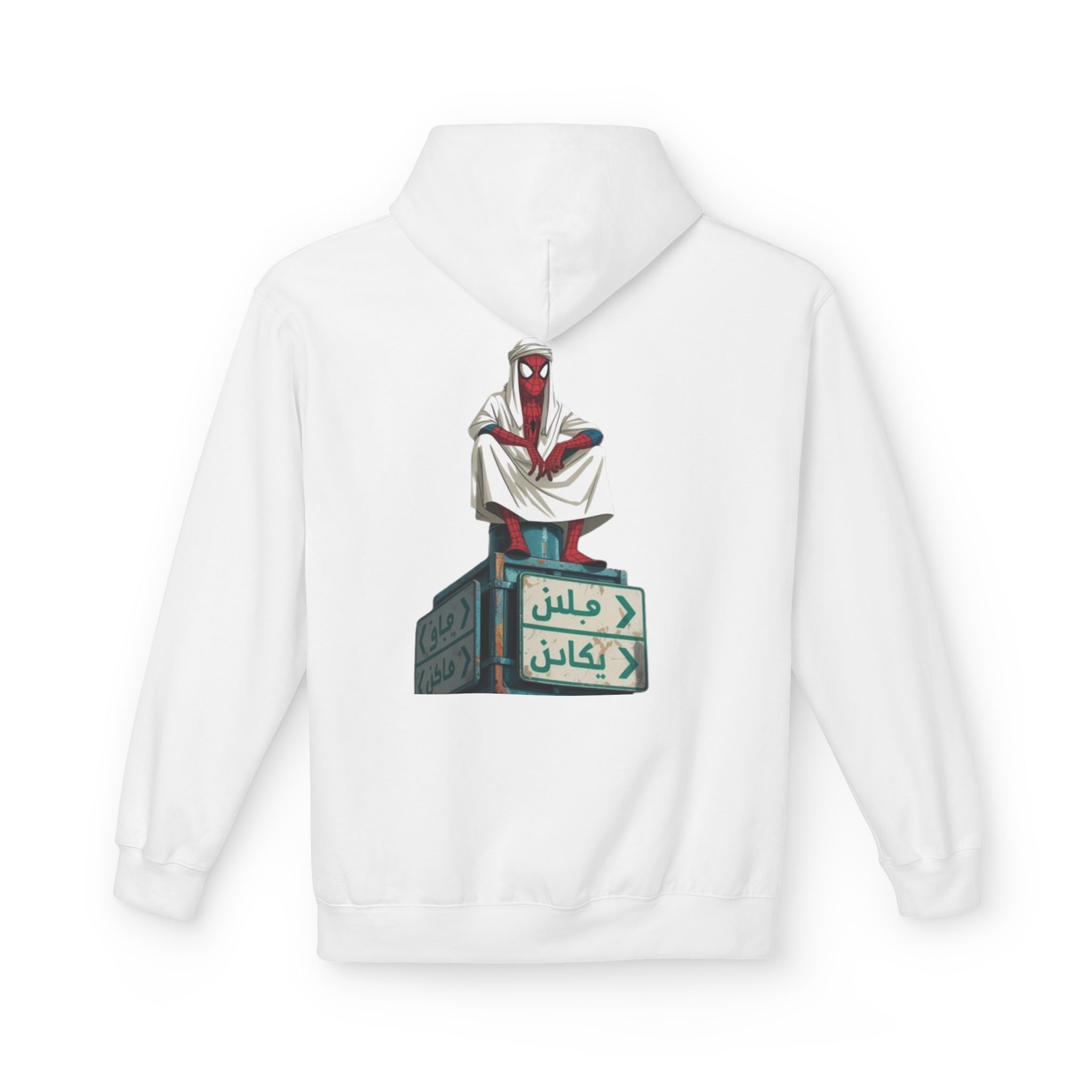 Be the first to review “Street Sign Hoodie with Cloaked Spider Hero Illustration”